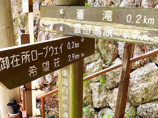 以前は、蒼滝までのコースに東海自然歩道が通っていたものの、今は裏登山道を一部利用してのアクセスのみとなっています。