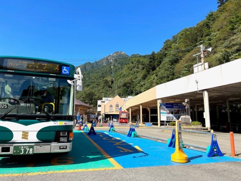 アクアイグニスから徒歩10分ほどで近鉄湯の山温泉駅の路線バスがあるので、乗車すると湯の山温泉・御在所ロープウエイ前までアクセスできます。