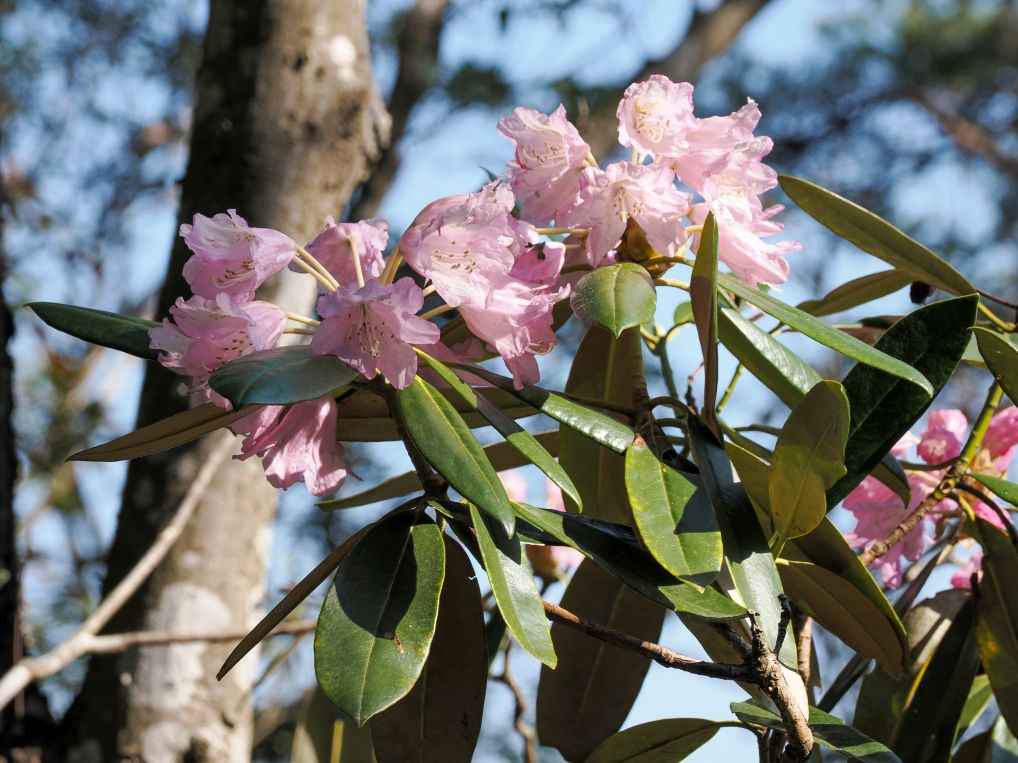 登山道の周囲に豊富に群生していて、まるでシャクナゲのアーチのなかを歩いているような景色を楽しめます。