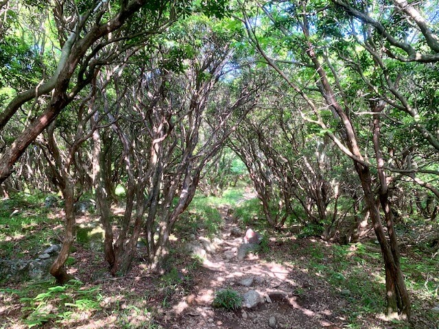 - 二本松尾根ルート:初級者向け(はじめは林の中を歩き後半は馬酔木の中を歩く)